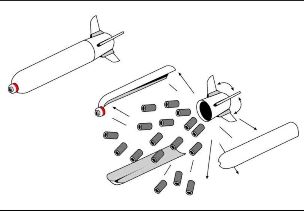 1つの弾頭が空中で分裂し、小型の爆弾を広範囲にばらまく兵器。