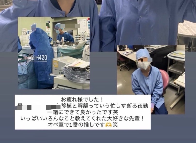 投稿された画像には、手術室内とみられる空間での様子が複数枚含まれており、医療スタッフや器具が写り込んでいる。さらに、画像の一部では患者の身体の一部とみられる箇所が確認できる状態だった。