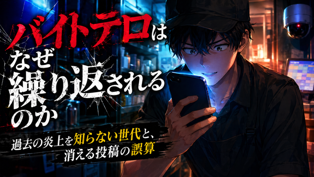 従業員による不適切なSNS投稿、いわゆる「バイトテロ」が再び目立っている。 飲食店の厨房、コンビニのバックヤード、美容室の予約画面、病院や介護施設の内部写真。本来なら外に出してはいけない場所や画面が、従業員のスマートフォ … 続きを読む バイトテロはなぜ繰り返されるのか|過去の炎上を知らない世代と、消える投稿の誤算